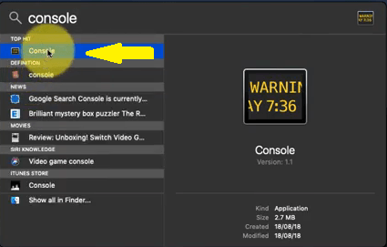 Schritt 2. Geben Sie Console in die Spotlight-Suche ein