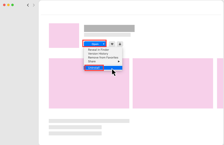 - Deinstallieren - Dann müssen Sie das Dreieck auf der Schaltfläche Öffnen drücken. Wählen Sie aus den angezeigten Menüs die Option zum Deinstallieren aus.