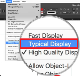 Reduzieren Sie die Anzeige, wie Ihre Grafiken auf dem Bildschirm angezeigt werden, damit der Speicher nicht zum erneuten Zeichnen dieser Grafiken verwendet wird. Bewegen Sie den Cursor einfach zum oberen Menü, klicken Sie auf Ansicht und wählen Sie Anzeigeleistung. Eine weitere Dropdown-Liste wird angezeigt. Wählen Sie Typische Anzeige. Wenn Sie es auf der typischen Anzeige belassen, können Sie InDesign beschleunigen.