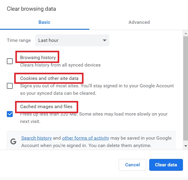 - Aktivieren Sie auch die Kontrollkästchen für „Caches Images And Files“ und „Cookies And Other Site Data“.