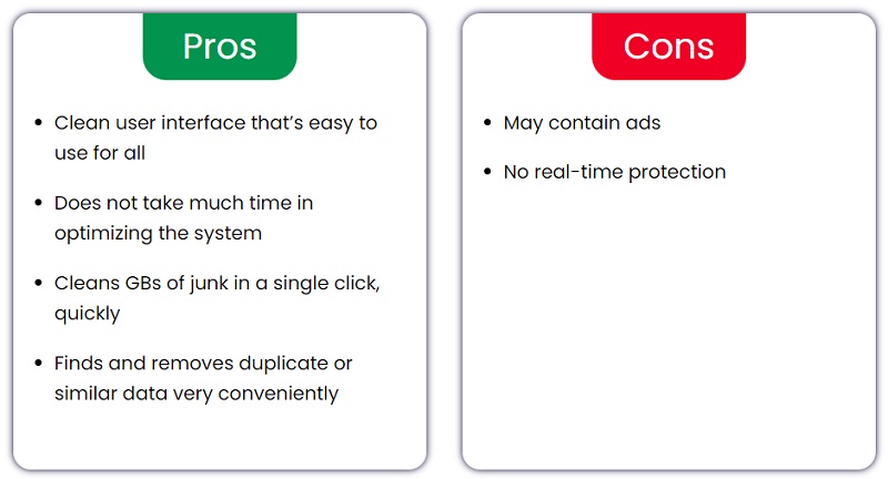 So funktioniert es reibungslos und schnell. Abgesehen von seinen Bereinigungstools bietet es eine Vielzahl von Funktionen und Fähigkeiten, die in anderen Optimierungs-Apps nicht enthalten sind.