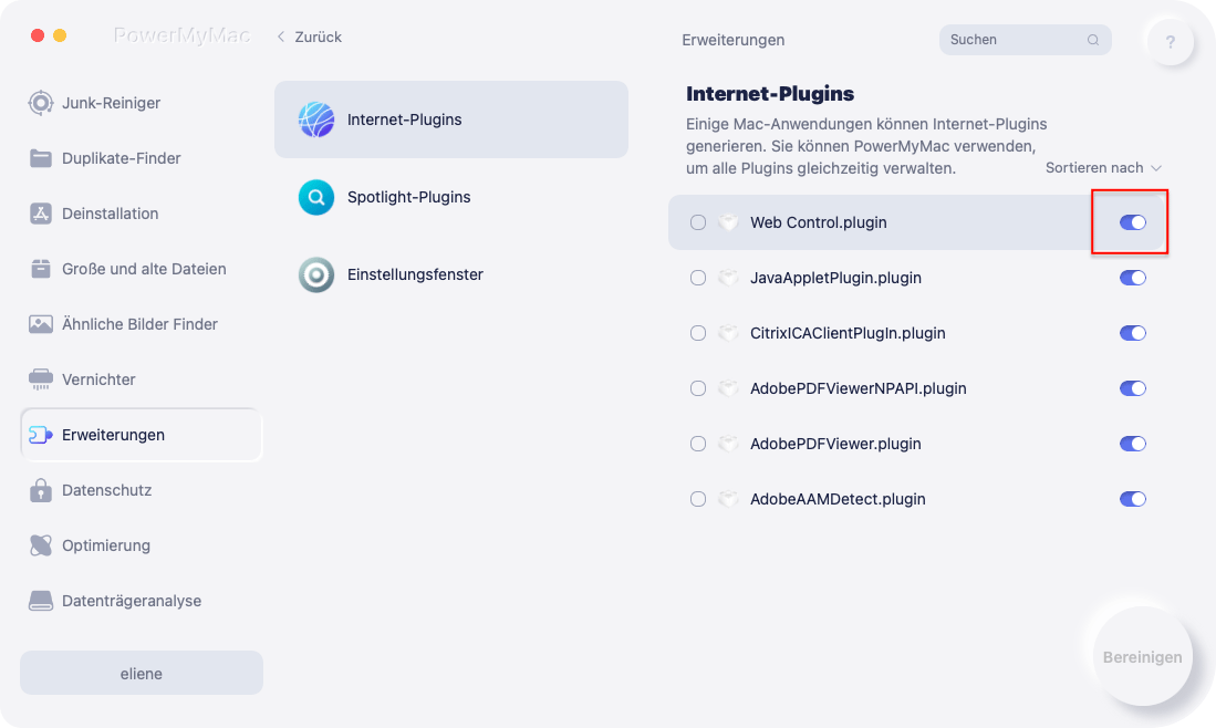 Verwenden des PowerMyMac-Erweiterungsmoduls