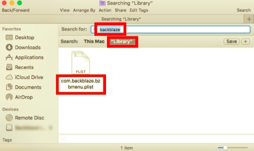 - Wiederholen Sie dann die Verfahren, um alle Backblaze-Reste aus dem Bibliotheksverzeichnis zu entfernen.