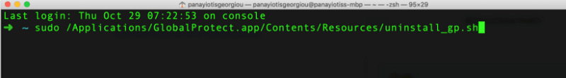 sudo /Applications/GlobalProtect.app/Contents/Resources/uninstall_gp.sh