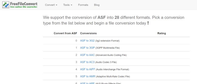 Ein weiterer ASF Converter, der einen Versuch wert ist, ist FreeFileConvert, der Hunderte von Konvertierungen verarbeiten kann. Es könnte unter anderem ASF in FLV, ASF in VOB, ASF in 3GP, ASF in MOV und ASF in MPEG konvertieren, da es so viele unterstützt. Diese ASF-Dateien können von einer Vielzahl von Orten hochgeladen werden, einschließlich einem lokalen PC, Cloud-Speicher oder einer Video-URL. Es gibt ein paar einfache Schritte für das Verfahren. Sie können nur fünf Dateien gleichzeitig hochladen, und jede Datei darf nicht größer als 100 MB sein.